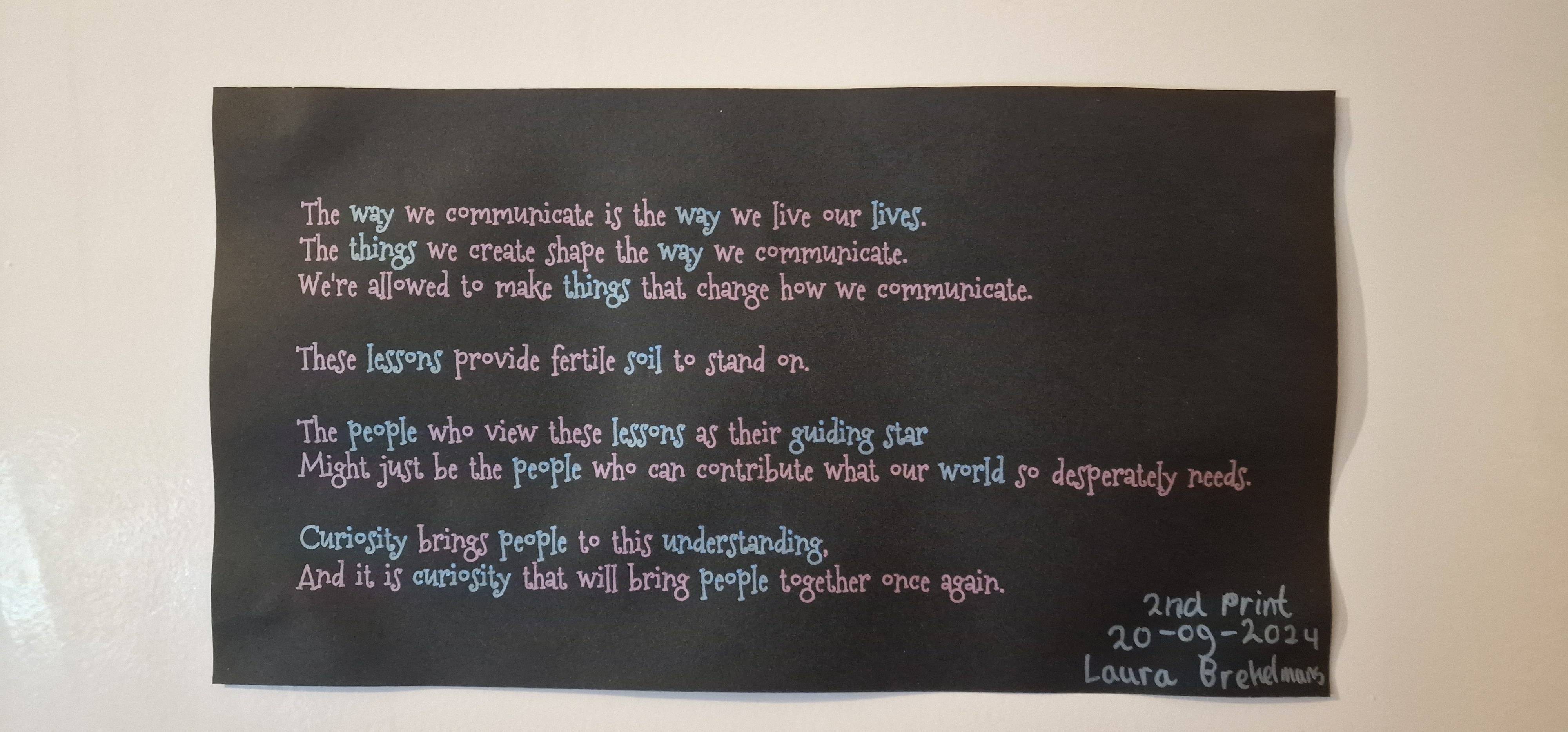 The core idea of Applied Communication Design is based on McLuhan’s media theory “The medium is the message”, which can more or less be summarised as “our (technological) environment shapes us as much as we shape our (technological) environment”. There’s a lot more to be said about this topic, but I believe this is a reasonably fair take on the idea.